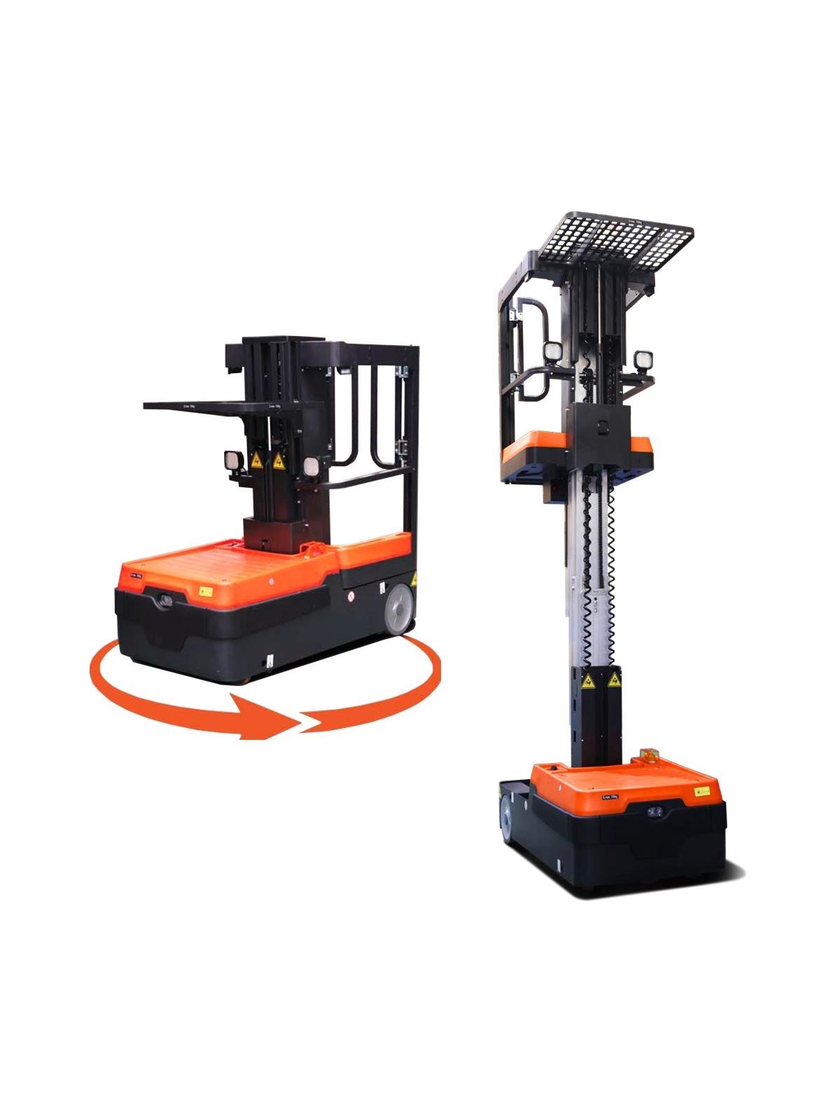 The redesigned Rebel-10 takes productivity and safety to the next level. A new front drive wheel with proportional controls and a zero-turn radius makes maneuvering smooth. The powered merchandise deck adjusts easily with one-finger controls, improving ergonomics and visibility during use. Surrounding railings and strong saloon-style gates keep associates secure, while the lithium battery delivers long run times and fast charging to minimize downtime. FOB Shipping Point. Surcharge may apply.