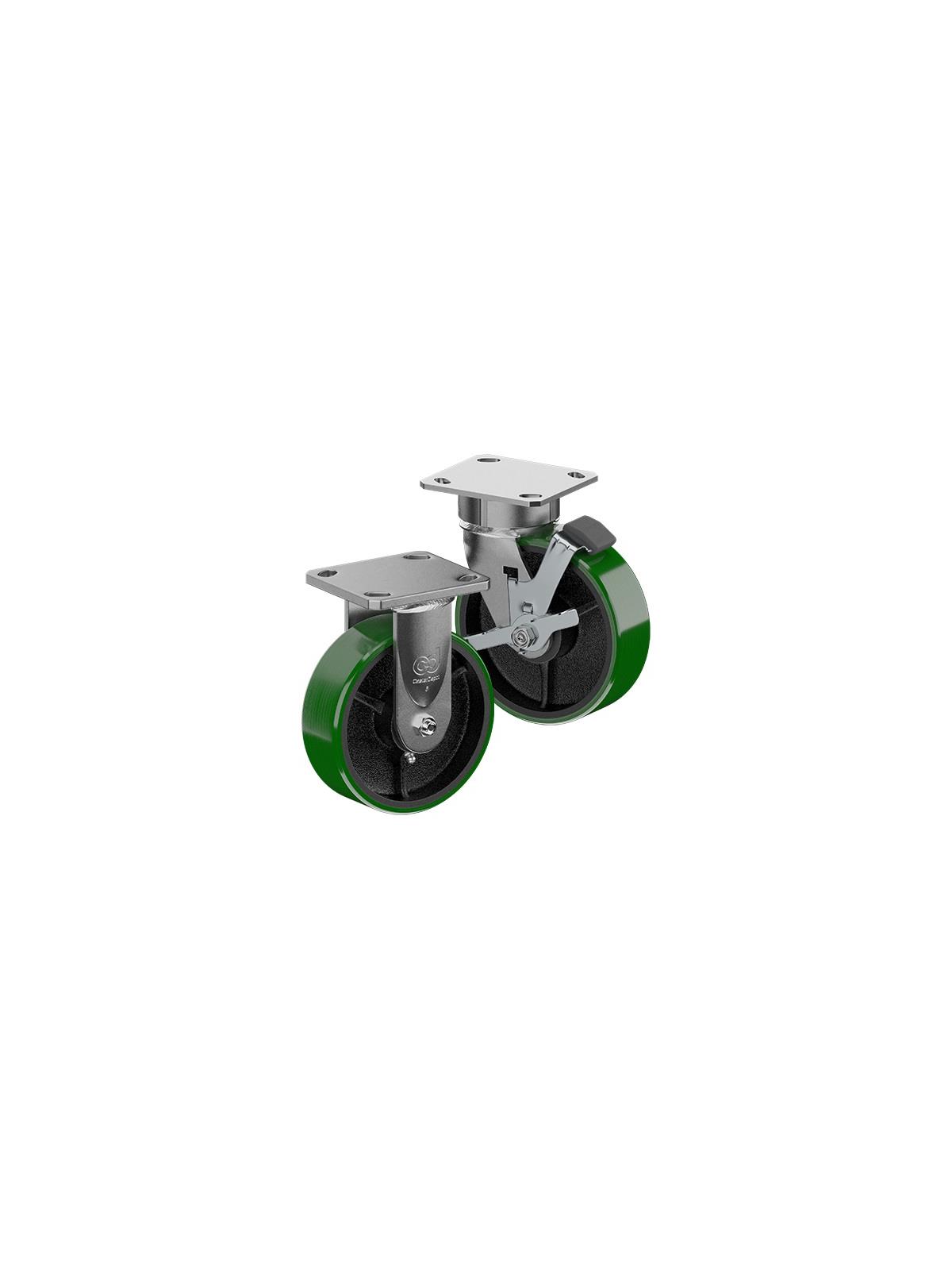 8 x 2" Poly On Cast Iron Wheel w/ Pedestal Ball Bearing