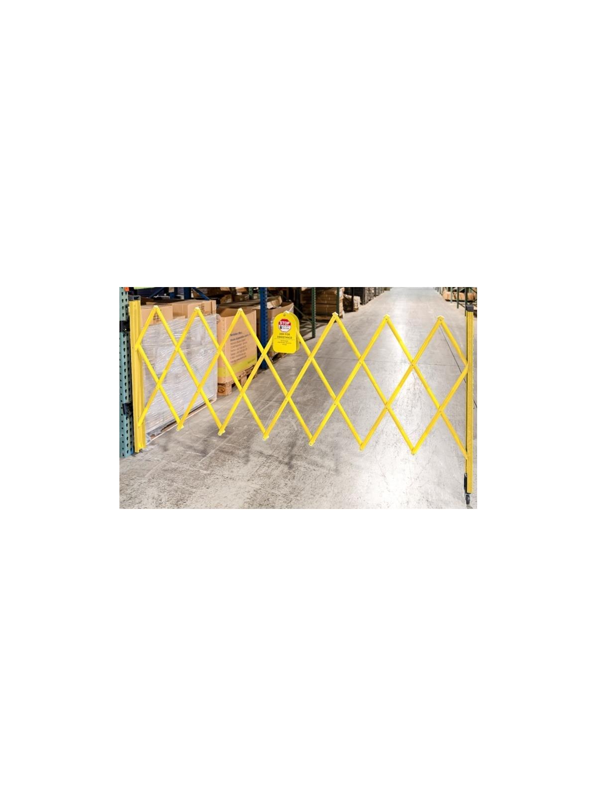 Both versions have the capability to close down aisles from a few feet up to 12 feet wide. Gates include bracket sets that can attach to different types of uprights. The Fiberglass version is flexible and less susceptible to damage if struck by equipment. Gates have adjustable leading edge rollers to support the gate as it extends. Yellow is standard.  FOB Shipping Point.