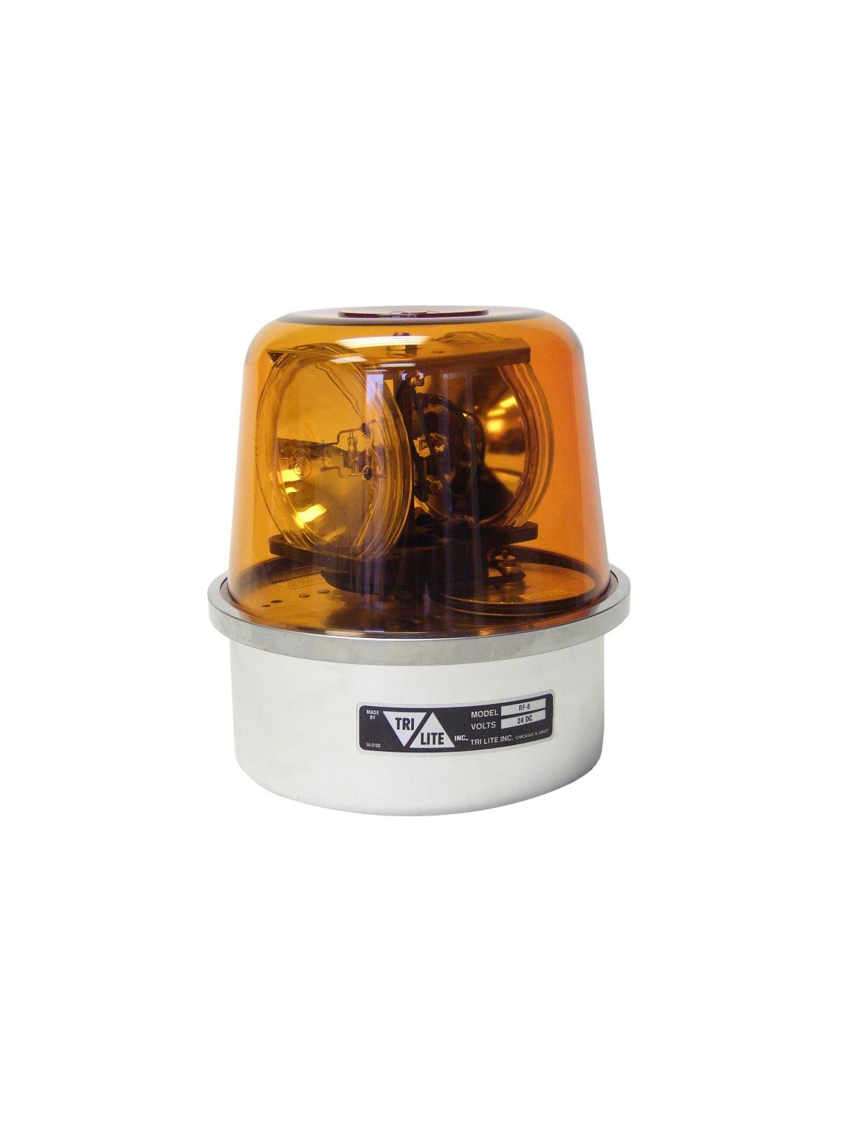 The RFC is a quiet, belt-driven warning beacon that utilizes rotating heavy-duty PAR 36 sealed beam lamps (35,000 candlepower/bulb) under a tough acrylic dome. The light is mounted on a heavy-duty aluminum base to keep out the elements and prevent corrosion. This versatile light is suitable for indoor/outdoor use and perfect for warning applications, lighting effects or the indication of machine status. HRF6L1-120P features black CYCOLAC™ housing. Dome colors available: Amber, Blue, Clear, Green, or Red -- please specify in comments. 0.8 amps at 110 VAC. 9-1/2" high, 8-1/2" diameter. FOB Shipping Point.