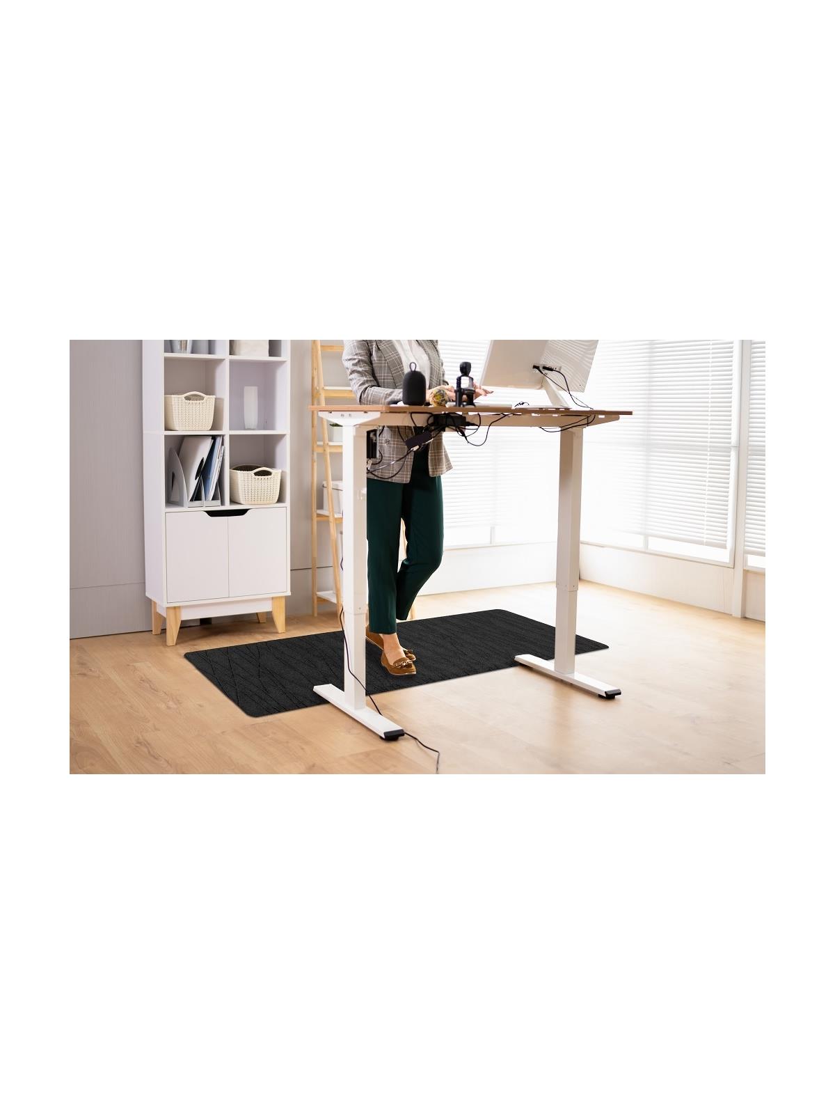 TuffComfort standing desk mats provide workers with a comfortable, healthy alternative to sitting throughout their workday, minimizing the negative effects on the body associated with sitting for long periods of time. FOB Shipping Point. • Comfortable - Polyurethane cushion runs edge-to-edge and provides excellent anti-fatigue properties to alleviate pain from extended standing; overall mat thickness is 3/4". • Safe - Beveled edges provide a seamless transition from floor to mat; edges will not crack or curl. • Stain-Resistant - PET fabric is naturally stain resistant, making it easy to remove stains from the mat. • Eco-Friendly - PET fabric surface is made from at least 90% recycled content reclaimed from plastic.