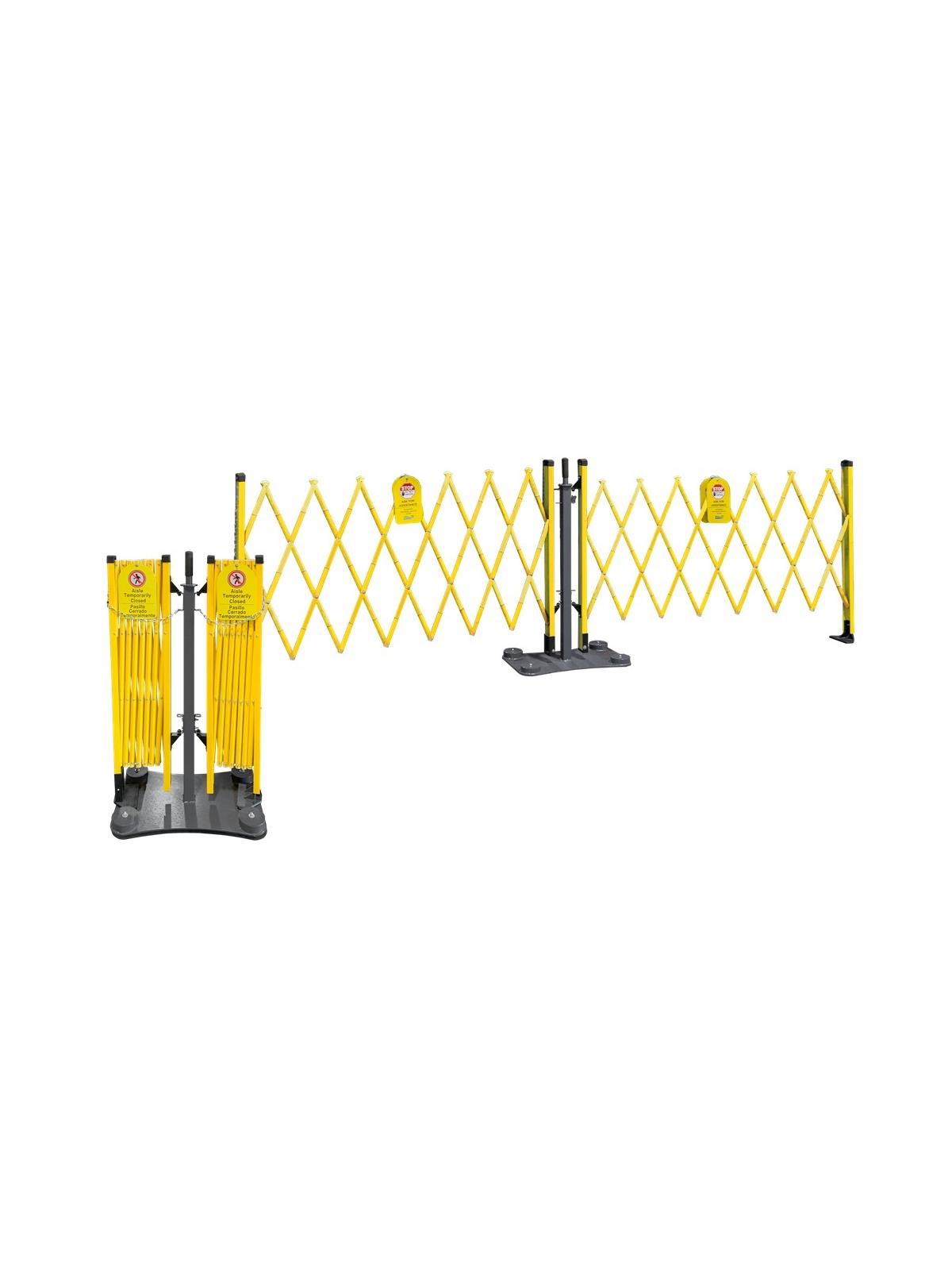 The Pedestal Double Gate combines two fiberglass safety gates with a steel central pedestal base. Fully expanded, the gates and pedestal cover over 24' of aisle and each gate is capable of being independently articulated up to 90 degrees to close off areas with a right angle. When collapsed, the gates rest entirely on the pedestal, which features four 2" swivel casters and an ergonomic handle so that the entire unit can be rolled in and out of place for easy deployment. FOB Shipping Point. Surcharge may apply.