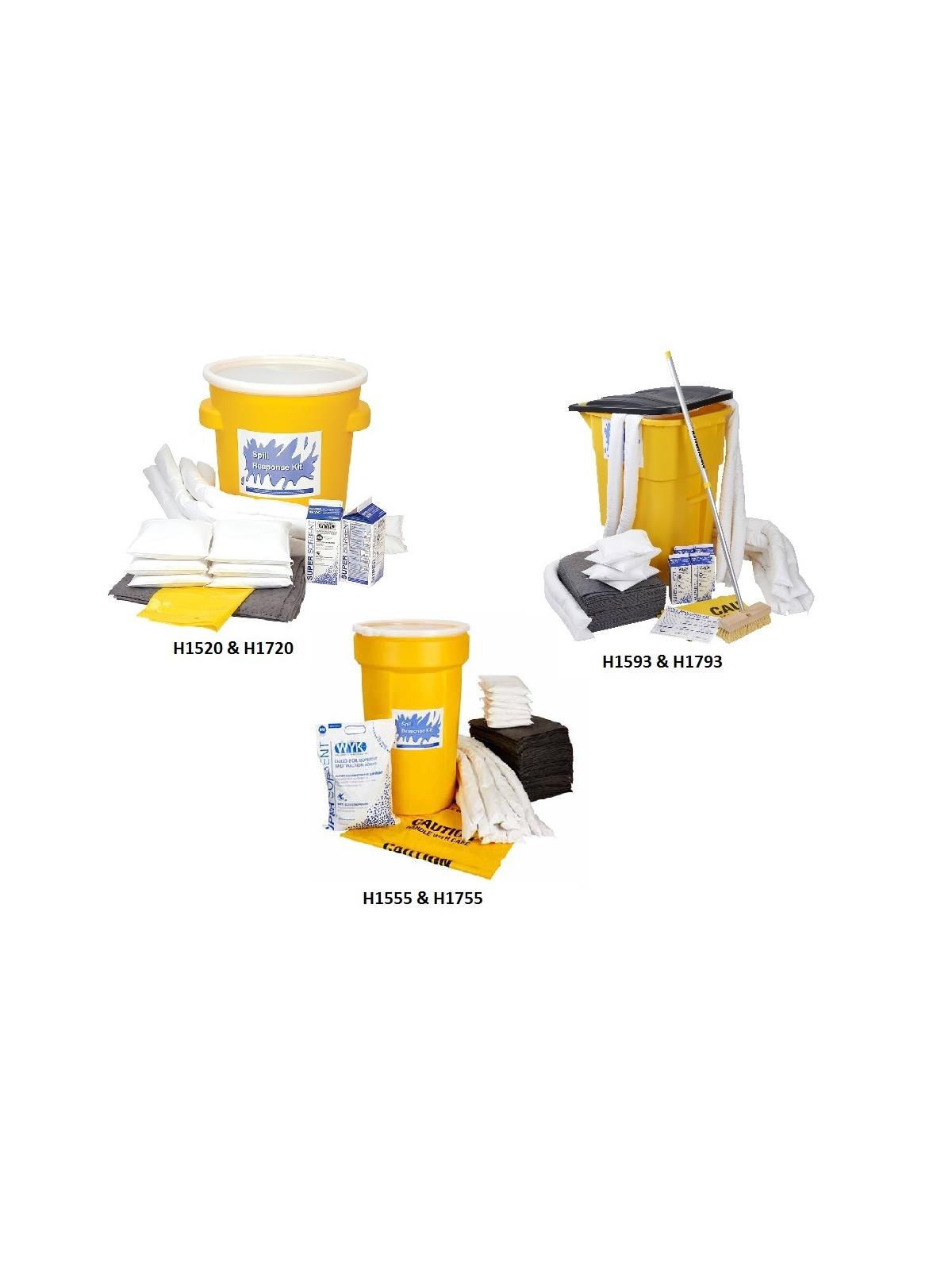 Great for larger spills. The 14 to 95 gallon drums offer best in visibility, ease of use and higher sorbent capacities. Other sizes available. FOB Shipping Point. All Spill Kit illustrations are shown as "Universal". The gray sorbents changes to white sorbents on Oil Select Kits.