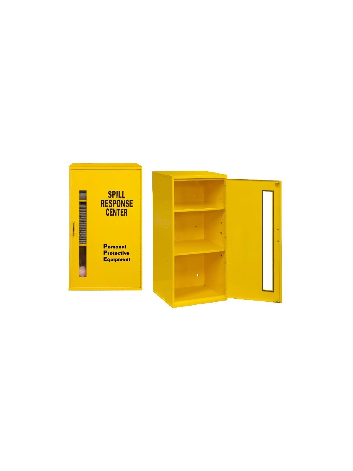 Constructed using prime cold rolled steel. Door is welded and riveted in place using a full piano hinge with a rust resistant hinge pin. Spring loaded latches keep door closed and allows easy access in an emergency. 2 fully adjustable shelves are included. Full length plexiglass window allows easy content inventory. Keyhole slots in back provide for wall hanging. FOB Shipping Point.