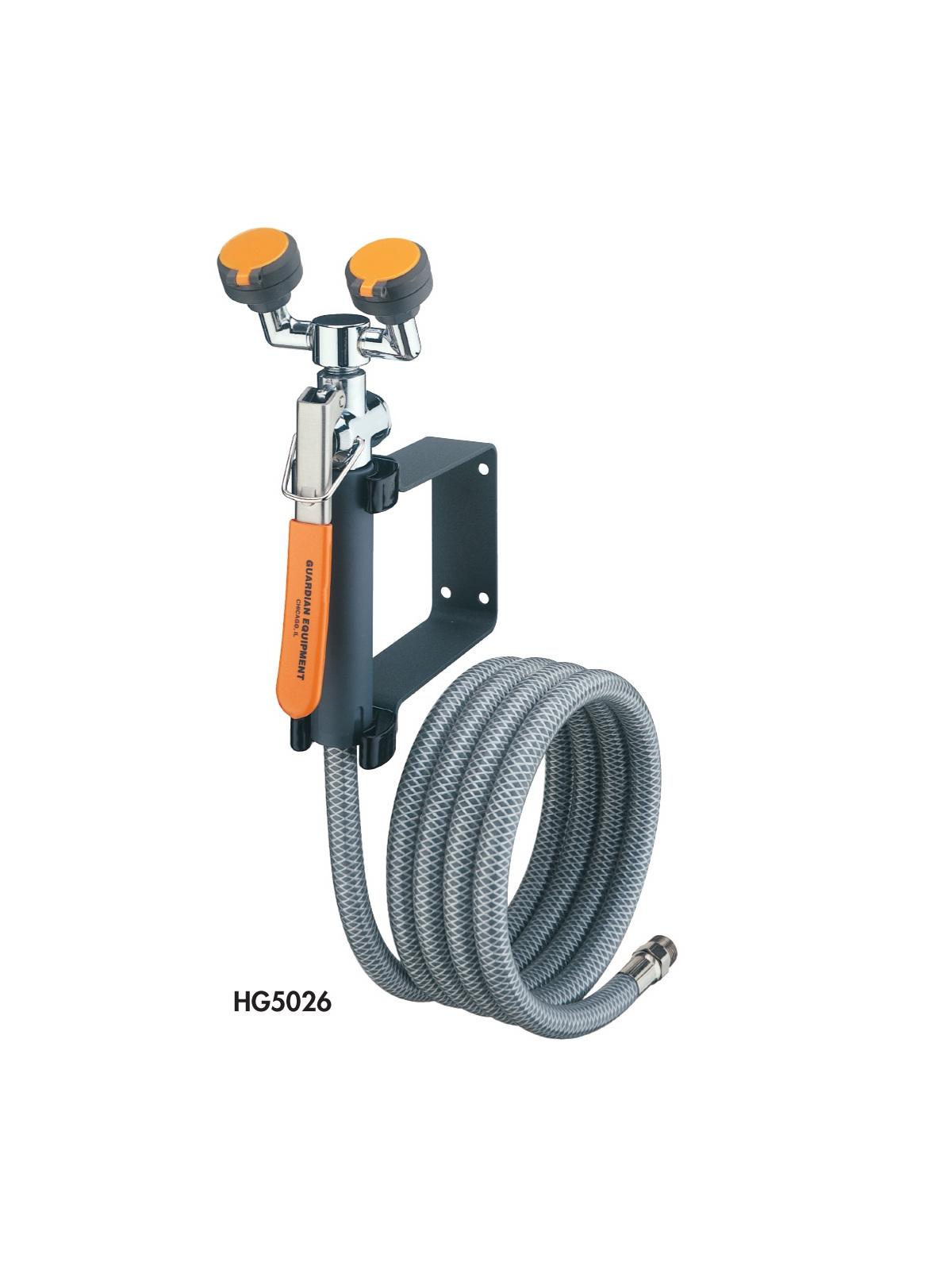 Dual Head Eye Wash/Drench Hose - Features 2 GS-Plus Spray heads, 8' reinforced PVC hose and chrome plated squeeze valve with locking clip. Serves as a drench hose or a primary eye wash.