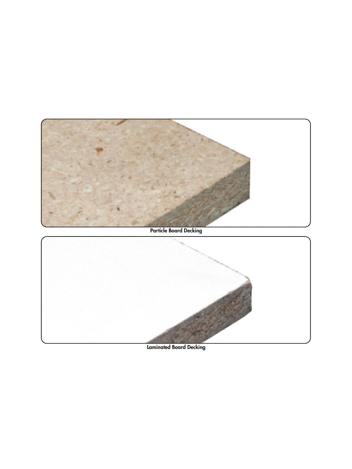 Provides a strong and durable shelf surface. 1/2" particle board decking is recommended for standard to light-duty applications. 3/4" decking is ideal for heavy duty applications. Decking provides a smooth work surface and enhances the appearance of shelving. FOB Shipping Point.